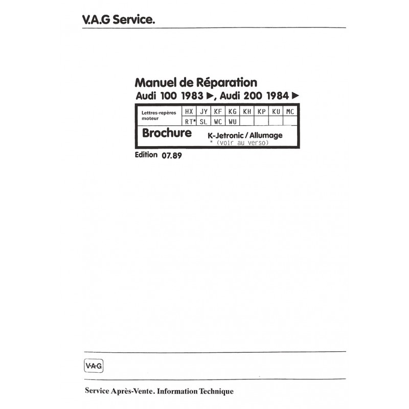 - Manuel Technique Entretien & Revision Audi 100 1983 > ...... Audi 200 1984 > ...... Pour Modeles > Milesime 1985 68 Pages Edition Avril 1991 Reproduction