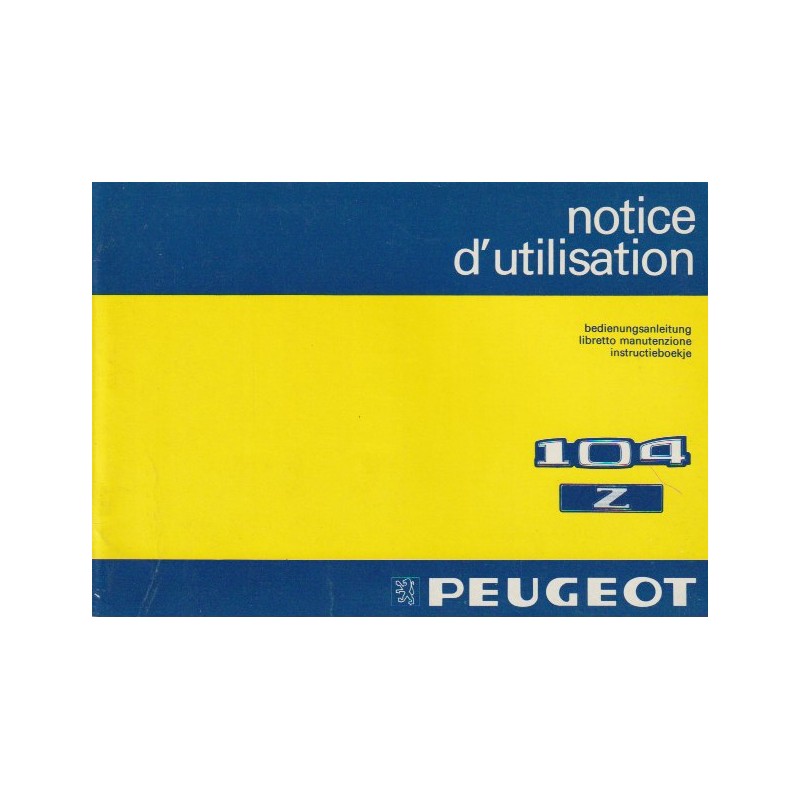 - Notice d' Entretien Peugeot 104 : Z , ZS , ZA Edition 09/ 1984 64 Pages Format 135 mm x 210 mm Original ( FR , D , IT , NL ) Bon Etat