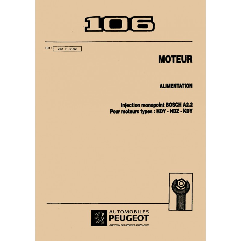 - Documentation Technique Peugeot 106 Injection Monopoint Magneti Marelli 8P Moteurs : MFZ & NFY (TU2J2L) Edition 08/1994 87 Pages Reproduction
