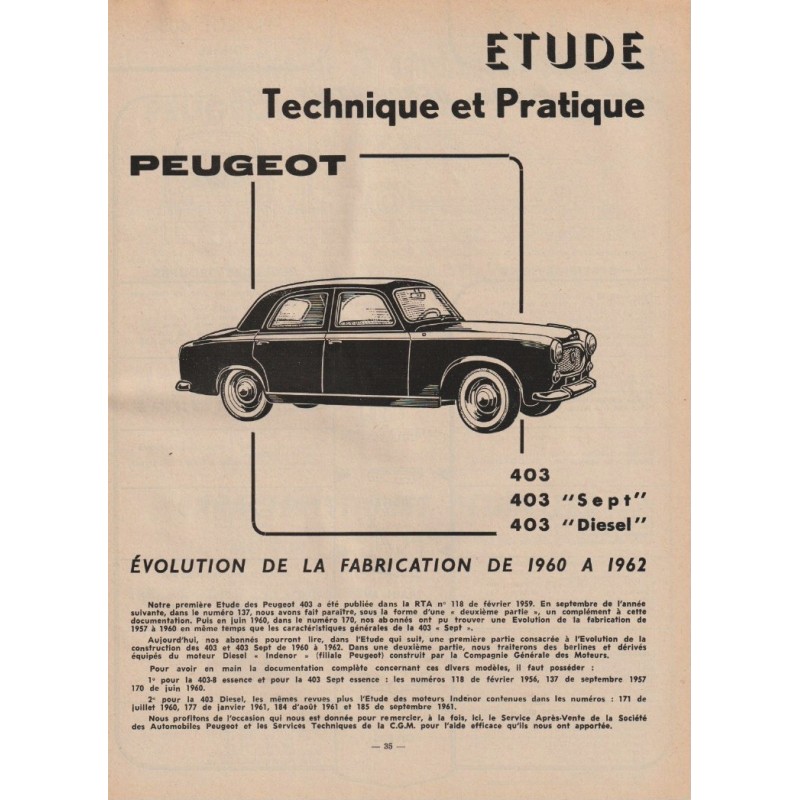 - Revue Technique Automobile Reprend les RTA : N° 118 , 137 , 170 217 & 220 Peugeot 403 8 CV & 7 CV Moteurs Essence Mecanique & Electricité Edition Fevrier 1964 150 Pages