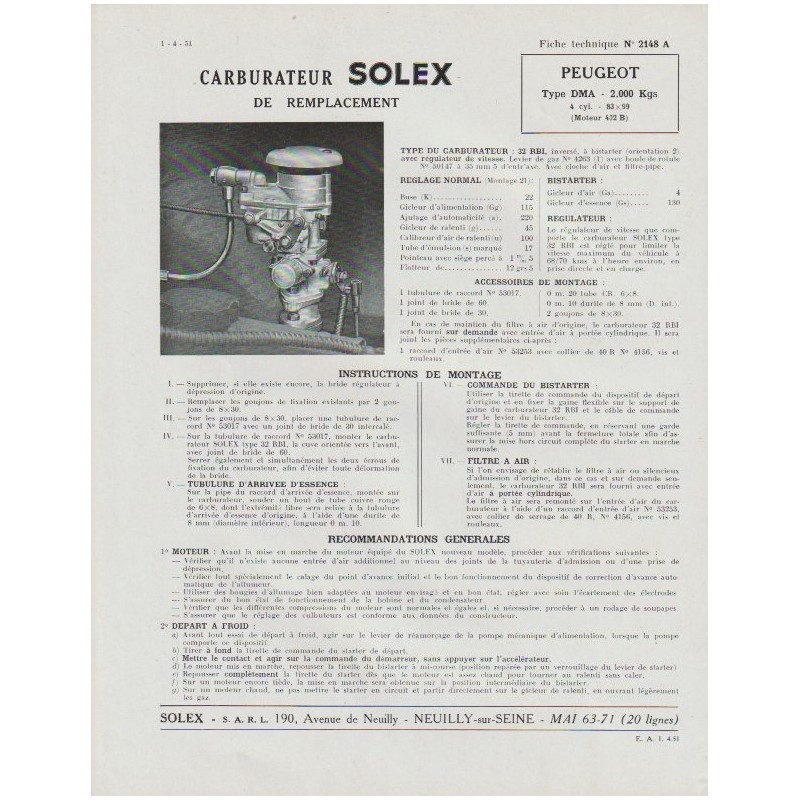 - Documentation d' Atelier Peugeot D3A Edition Avril 1951 - Moteur - Embrayage - Boite de Vitesses - Train AV - Pont AR - Direction - Freins - Suspension - Electricité - Entretien 45 Pages Reproduction