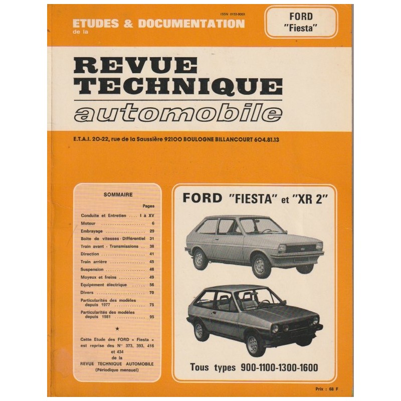 - Notice d' Entretien Ford Fiesta Tous Modeles (Inclus XR2i) Moteurs Essence : 1.0L , 1.1L , 1.4L & 1.6L Moteur Diesel : 1.8L Edition Française 07/1989 88 Pages Format 185 mm x 135 mm Original Bon Etat