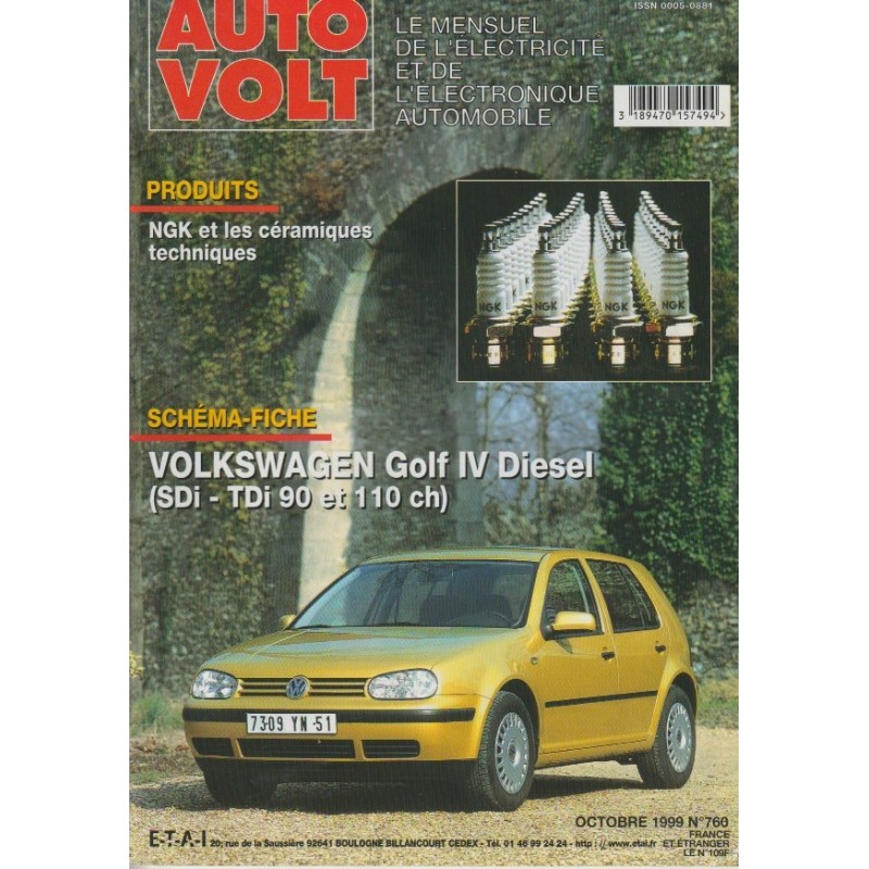 - Auto Volt N° 760 Octobre 1999 Etude Technique Electricite & Electronique VW Golf 4 Essence 1.6L 24 Pages Bon Etat