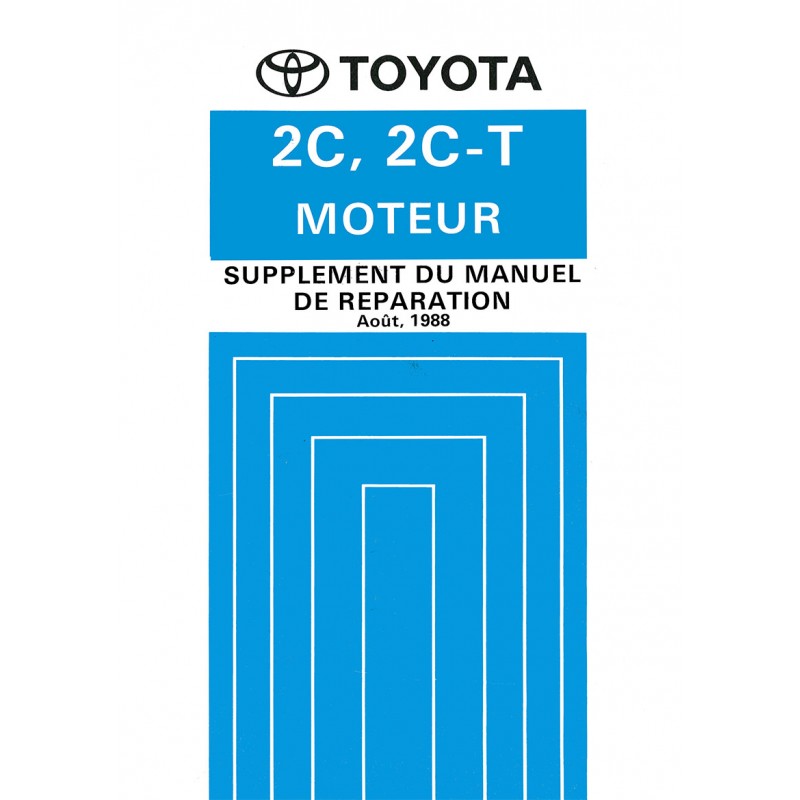 - Manuel de Reparation Moteurs 1C / 1C-T / 2C Toyota Lite Ace Serie CR21 - Introduction - Bloc-Moteur - Alimentation - Refroidissement - Lubrification - Entretien - Couples de Serrage Edition Française 10/1983 250 Pages Reproduction