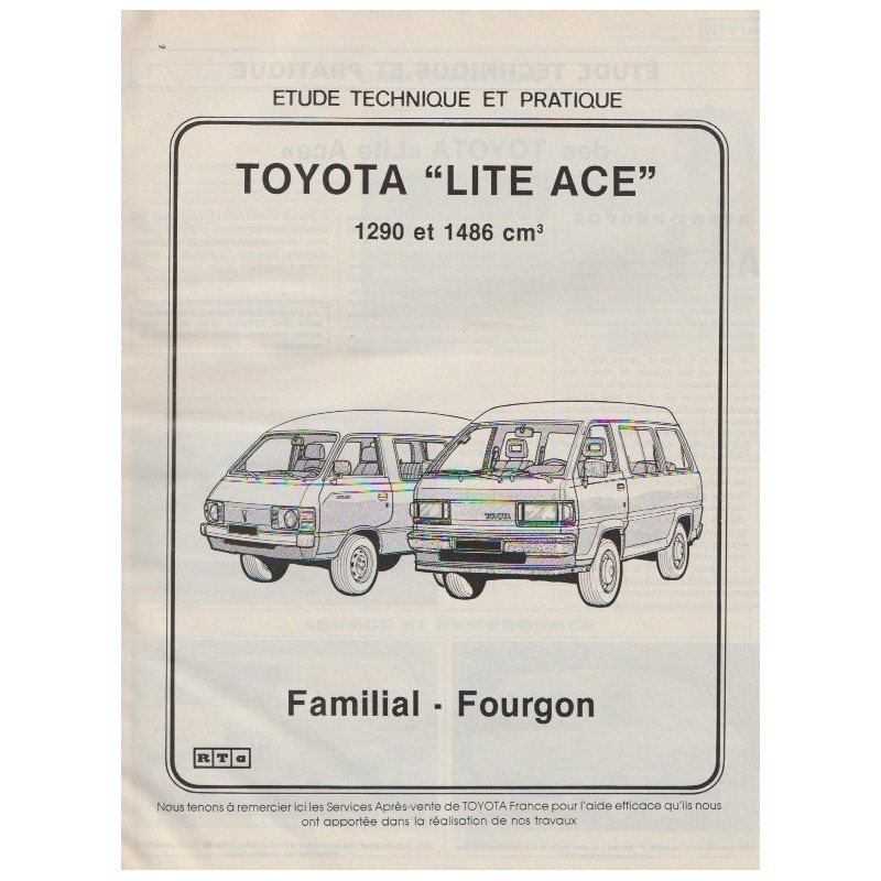 - Manuel de Reparation Toyota Lite Ace Series : KM30 , 31 & 36               YM30 & 35               CM35 - Introduction - Embrayage - Boite de Vitesses Manuelle - Boite de Vitesses Automatique - Arbre de Transmission - Essieu & Suspension AV - Essieu & Suspension AR - Circuit de Freinage - Direction - Circuits Electriques de la Carrosserie...