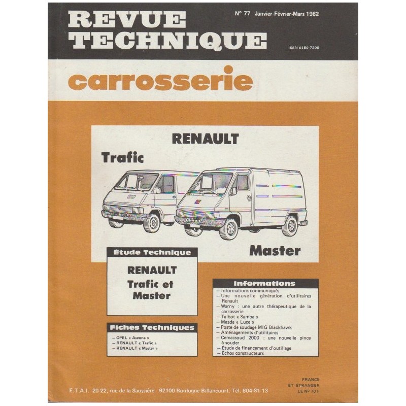 - Manuel de Reparation Carrosserie Renault Master FB 30 - Generalites - Elements Amovibles - Etancheité - Elements Soudés - Protection 150 Pages Edition Mai 1982 Original Bon Etat