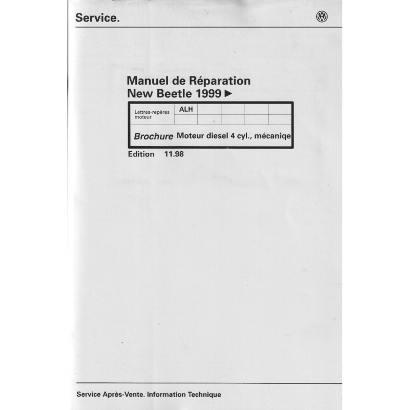 - Manuel de Reparation Moteur 4 Cyl Injection Lettre Repere Moteur : AWH New Beetle 1999 > ....... - Caracteristiques - Depose & Pose - Equipage Mobile - Culasse - Graissage - Refroidissement - Alimentation - Systeme d'Echappement 120 Pages Edition Novembre 1999 Original Bon Etat