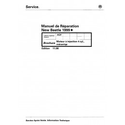 - Manuel de Reparation Moteur 4 Cyl Injection Lettre Repere Moteur : AVC (5 Soupapes) New Beetle 1999 > ...... - Caracteristiques - Depose & Pose - Equipage Mobile - Culasse - Graissage - Refroidissement - Alimentation - Suralimentation - Systeme d'Echappement 140 Pages Edition Aout 1999 Reproduction
