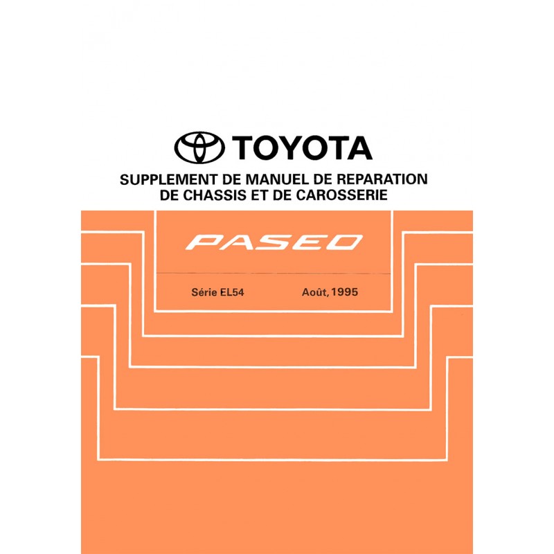 - Manuel de Reparation Toyota Paseo Serie EL54 - Introduction - Remplacement Panneaux Carrosserie - Construction Panneaux de Carrosserie - Carrosserie Matiere plastique - Traitement Antirouille - Cotes de Carrosserie Edition Aout 1995 100 Pages Original Bon Etat