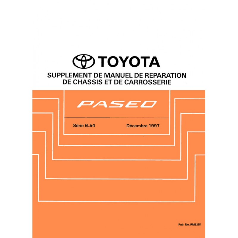 - Manuel de Reparation Toyota Paseo Serie EL54 - Introduction - Embrayage - Boite de Vitesses Manuelle - Boite de Vitesses Automatique - Essieu & Suspension AR - Essieu & Suspension AV - Circuit de Freinage - Direction - Circuits Electriques Carrosserie - Carrosserie - Circuit de Climatisation Edition Aout 1995 464 Pages Reproduction