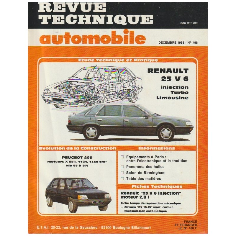 - Etude & Documentation Reprend les RTA N° 446 , 486 & 523 Edition Avril 1992 Renault 25 : TS , GTS , TX , GTX , GTS-ABS & TXi 130 Pages Bon Etat Couverture Legerement Tachée & Usée !!