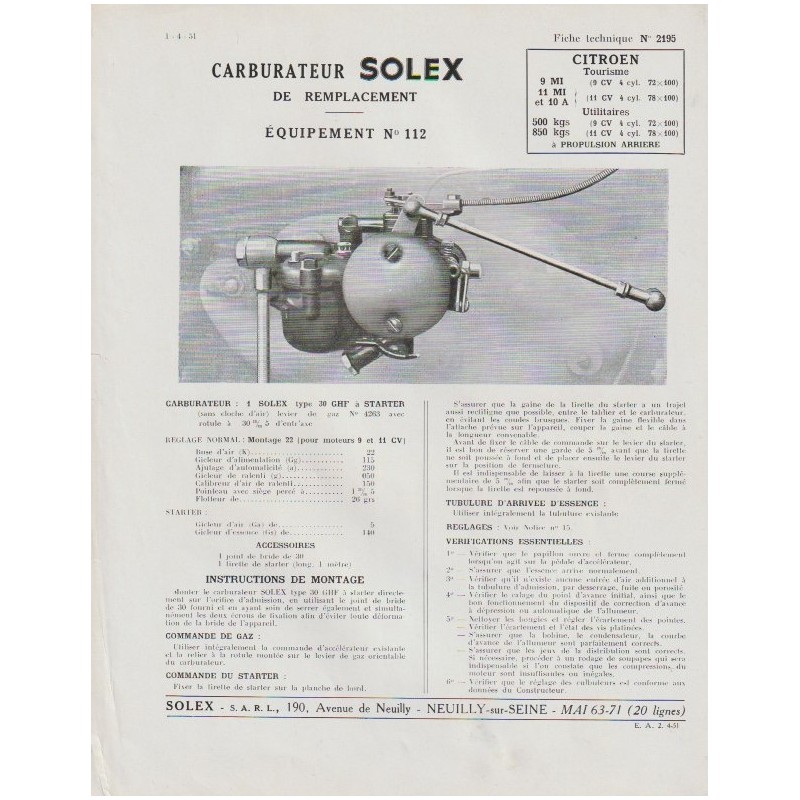 Fiche Carburateur Solex