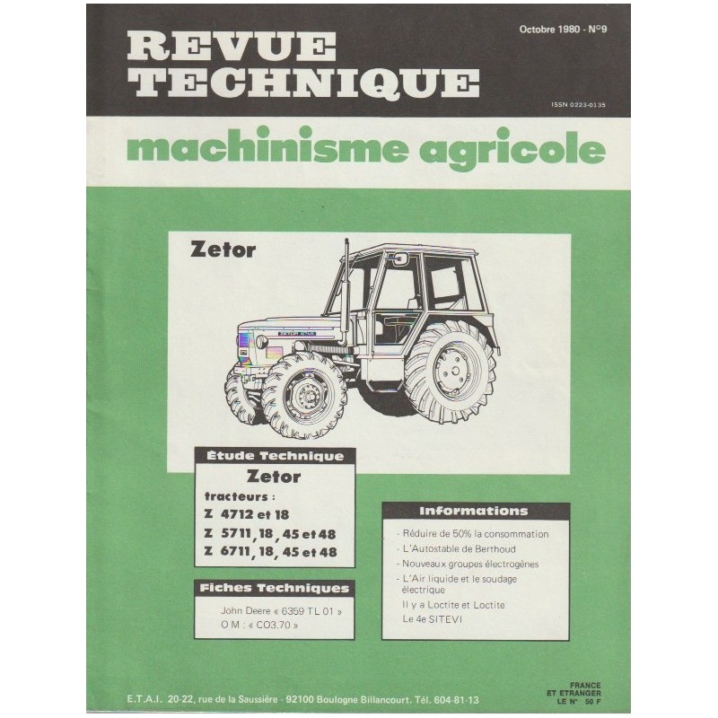 - Revue Technique Diesel N° 55 Edition Decembre 1987 Tracteurs : 8111 , 8145 , 10111 10145 , 12145 Moteurs : Z 8101.1 , Z 8002.1 , Z 8701.1 70 Pages Bon Etat