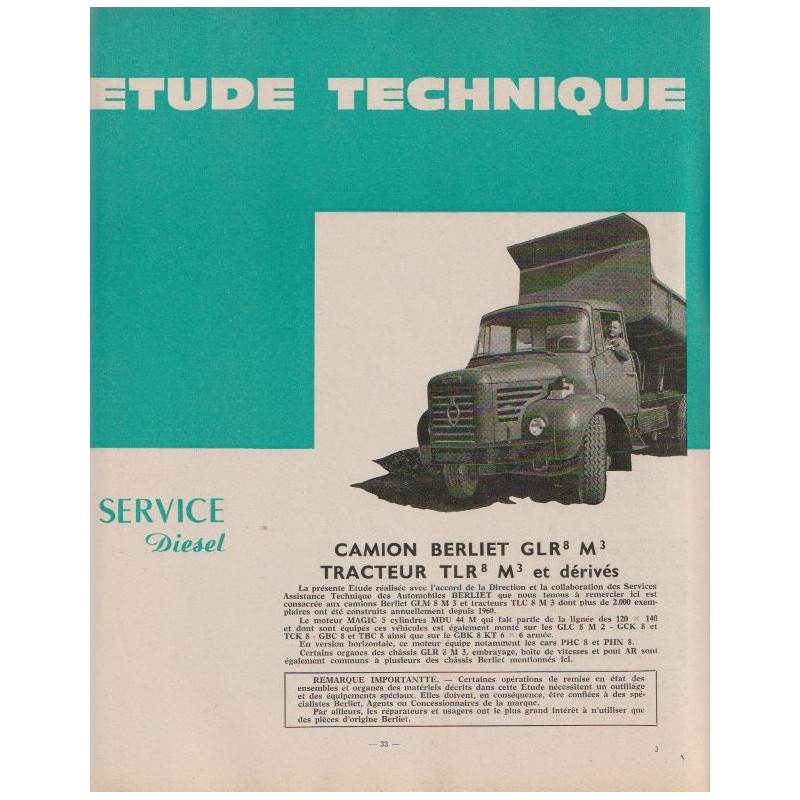 - Revue Service Diesel N°29 Edition Janvier 1968 Berrliet : GBK 6 & Derivés GBK 75 GLC 6M & Derivés PBH & PBK 6 Moteur MDX-M Mecanique & Electricité 40 Pages Bon Etat