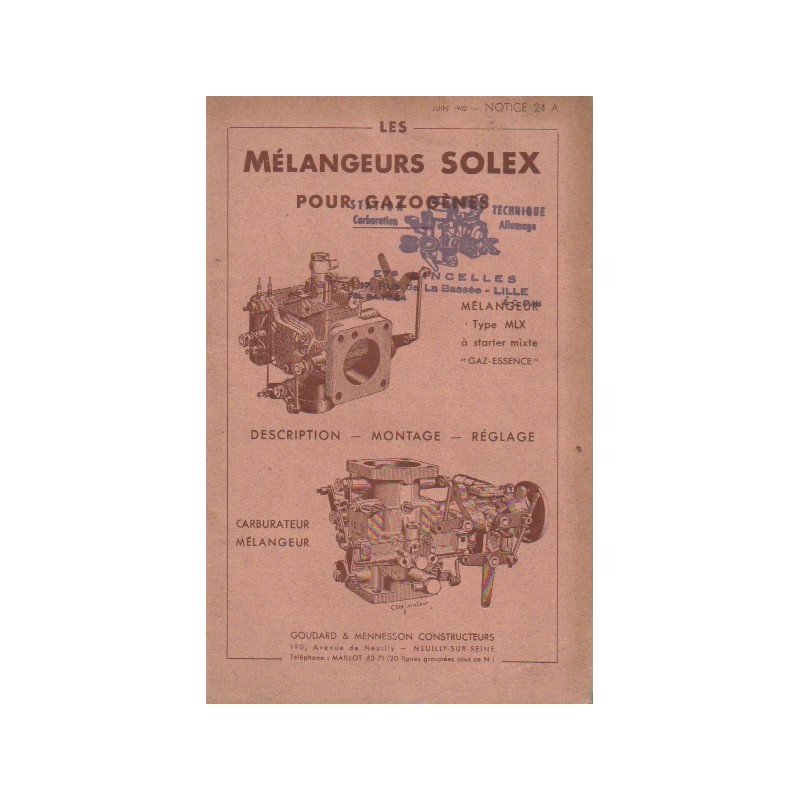- Etude Technique Carburateur Solex Type X Pour Carburants Gazeux Instalation , Reglages & Entretien 22 Pages Edition 03/1949 Format 210 mm x 135 mm Bon Etat