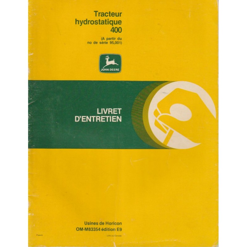 - Livret D' Entretien Tracteur John Deere 920 N° de Serie 61020L & apres .... - Caracteristiques - Mise en Route - Conduite - Carburant - Systemes Hydraulique - Poulie de Battage - Graissage - Entretien Periodique - Recherche de Pannes 80 Pages Reproduction