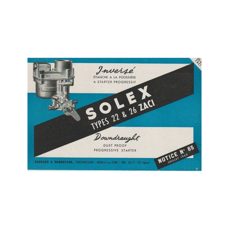 Carburateur Solex 22/26 ZACI