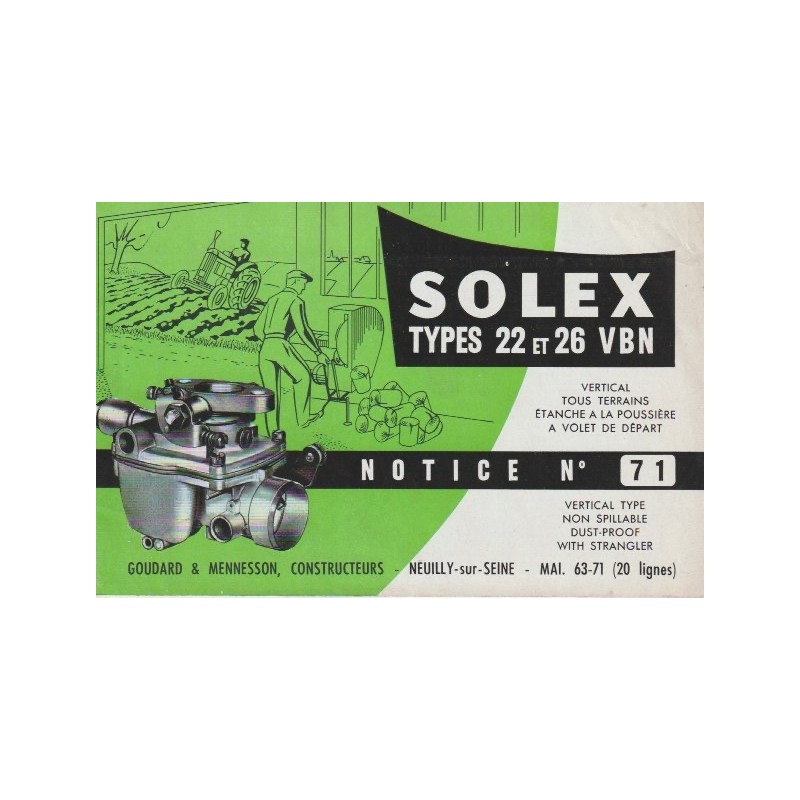 - Notice de Reglage N°727 G Carburateurs Solex Reglages & Montage Edition 09/1966 20 Pages Format 210 mm x 290 mm Bon Etat Couverture Legerement Usée !!