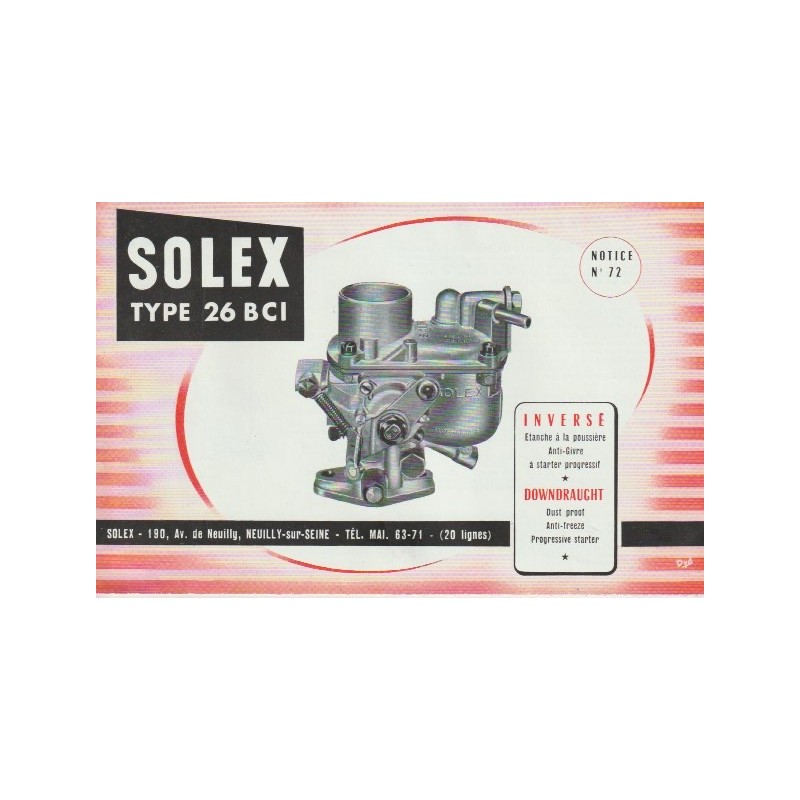 - Notice de Reglage Carburateurs Solex Types : Horizontaux , Verticaux Inversés , Double-Corps Instalation , Reglages & Entretien 27 Pages Edition 10/1952 Format 210 mm x 135 mm Bon Etat