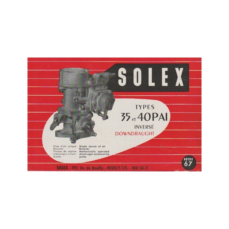 - Notice de Reglage N°37 Carburateur Solex 35-40 FPAI & FAPI Reglages & Entretien Edition 02/1944 4 Pages Format 210 mm x 135 mm Bon Etat