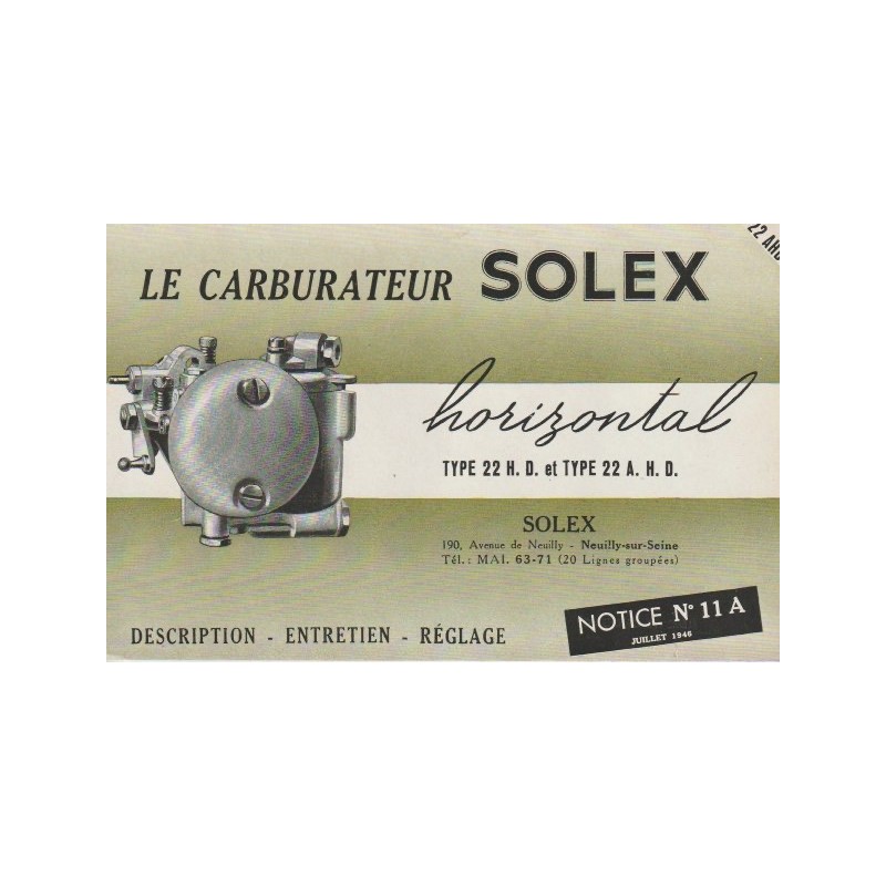 - Notice de Reglage N°71 Carburateurs Solex 22 & 26 VBN Reglages & Entretien Edition 06/1954 4 Pages Format 210 mm x 135 mm Bon Etat