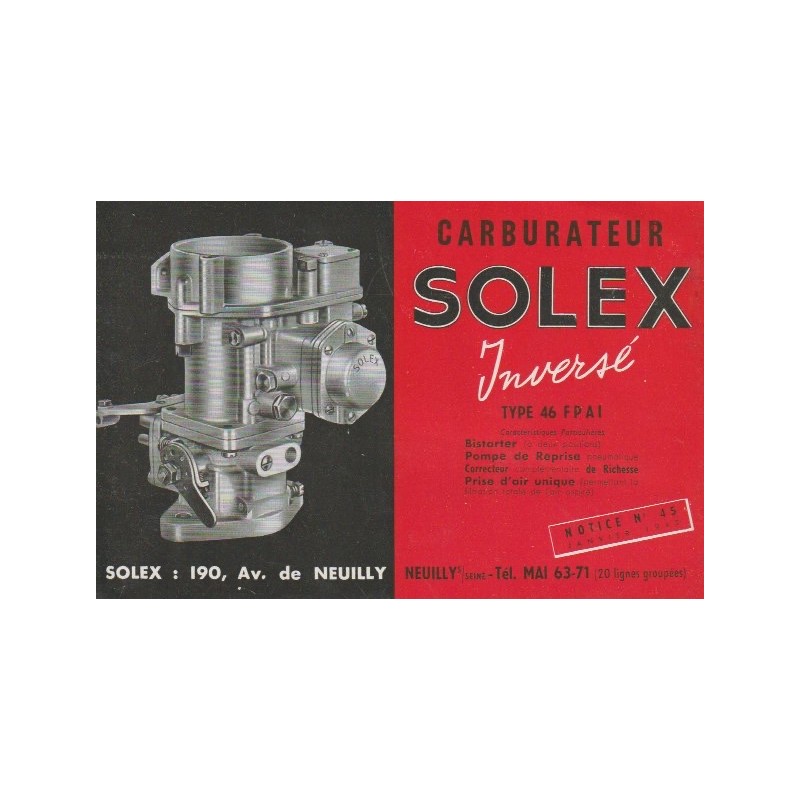 - Notice de Reglage N°37 Carburateur Solex 35-40 FPAI & FAPI Reglages & Entretien Edition 02/1944 4 Pages Format 210 mm x 135 mm Bon Etat